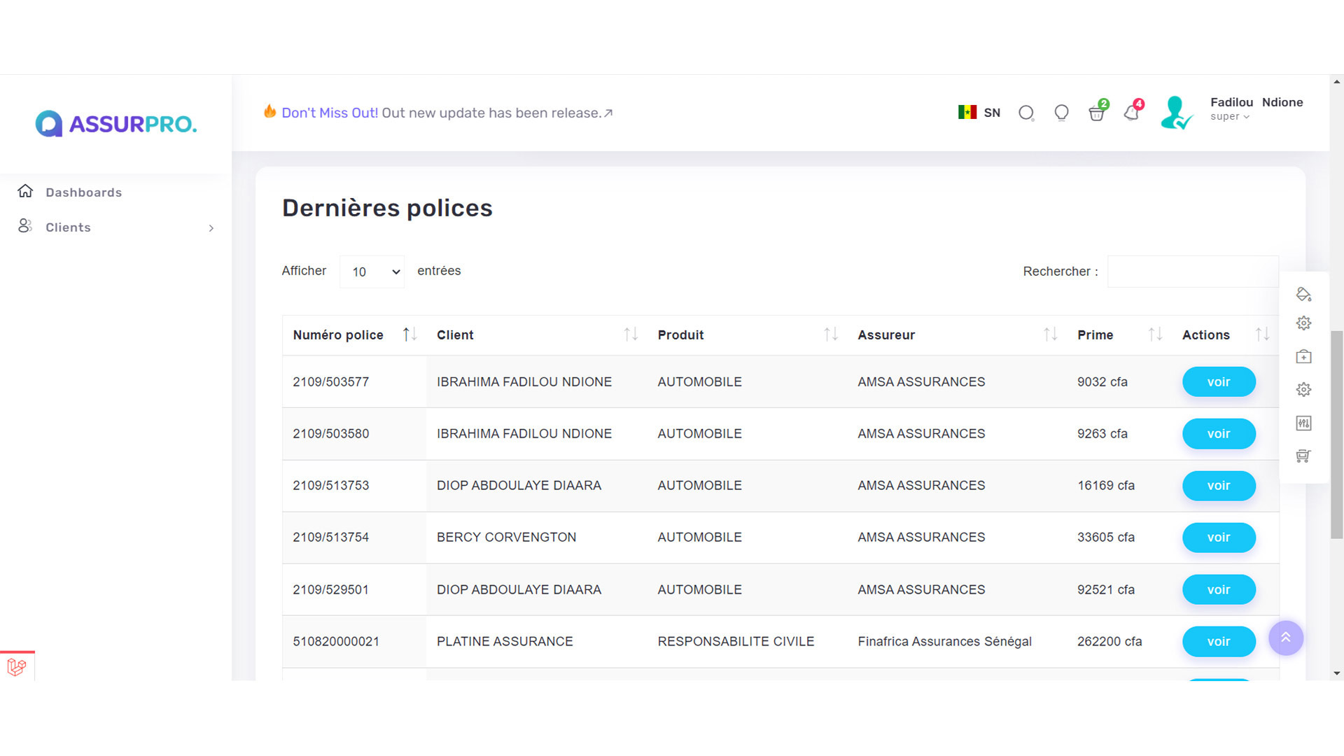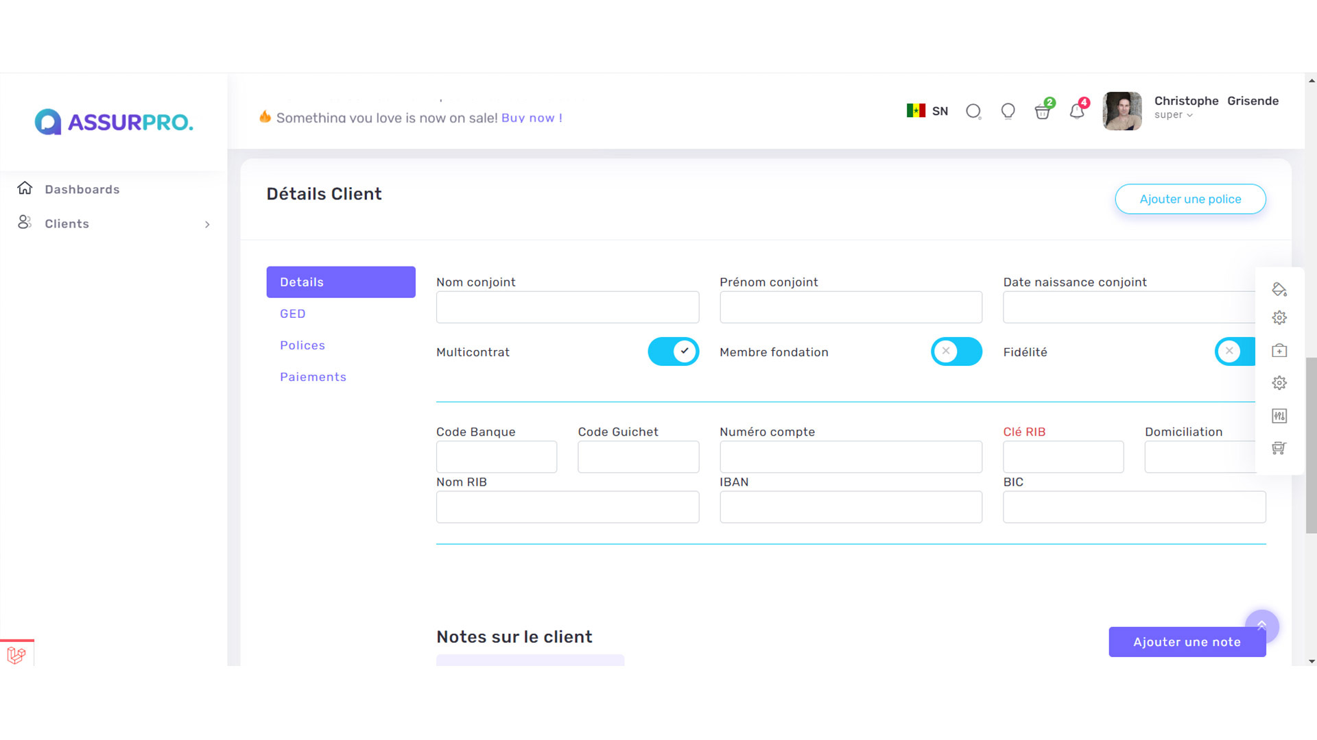 Gestion des Polices Clients :
